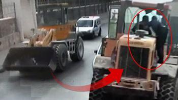 Öte yandan, kaçırılan kepçenin durdurulma anı ise çevredeki güvenlik kameralarına yansıdı.